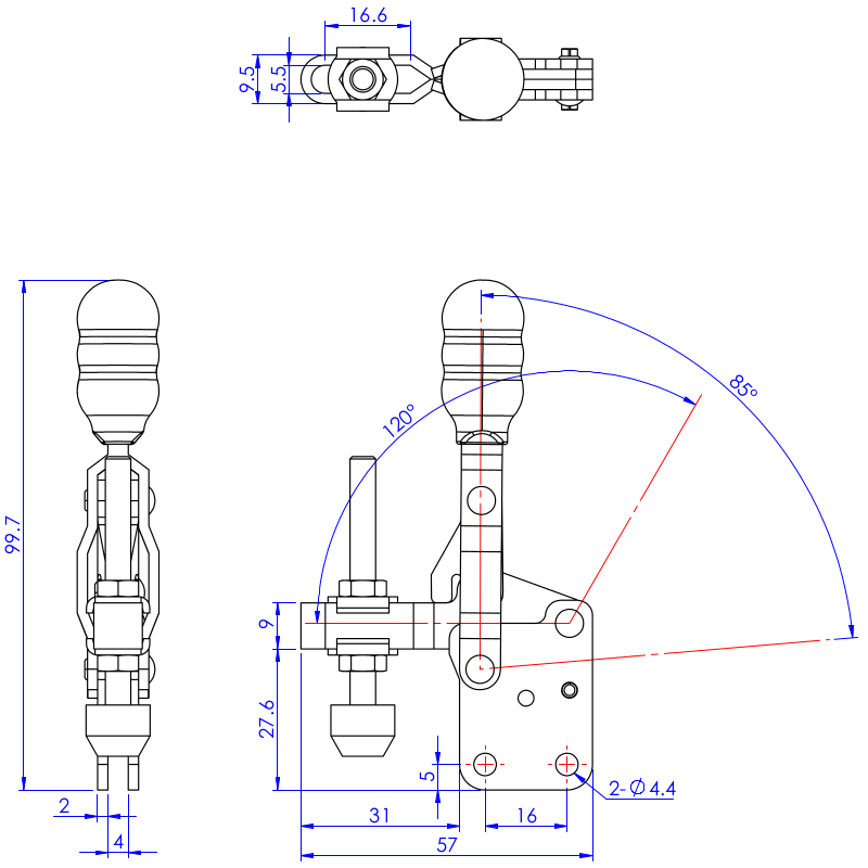 | Kąt odchylenia rękojeści | 90-125° |