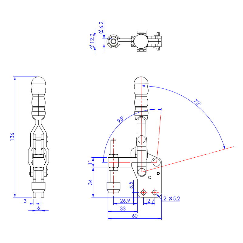 | Kąt odchylenia rękojeści | 75-110° |