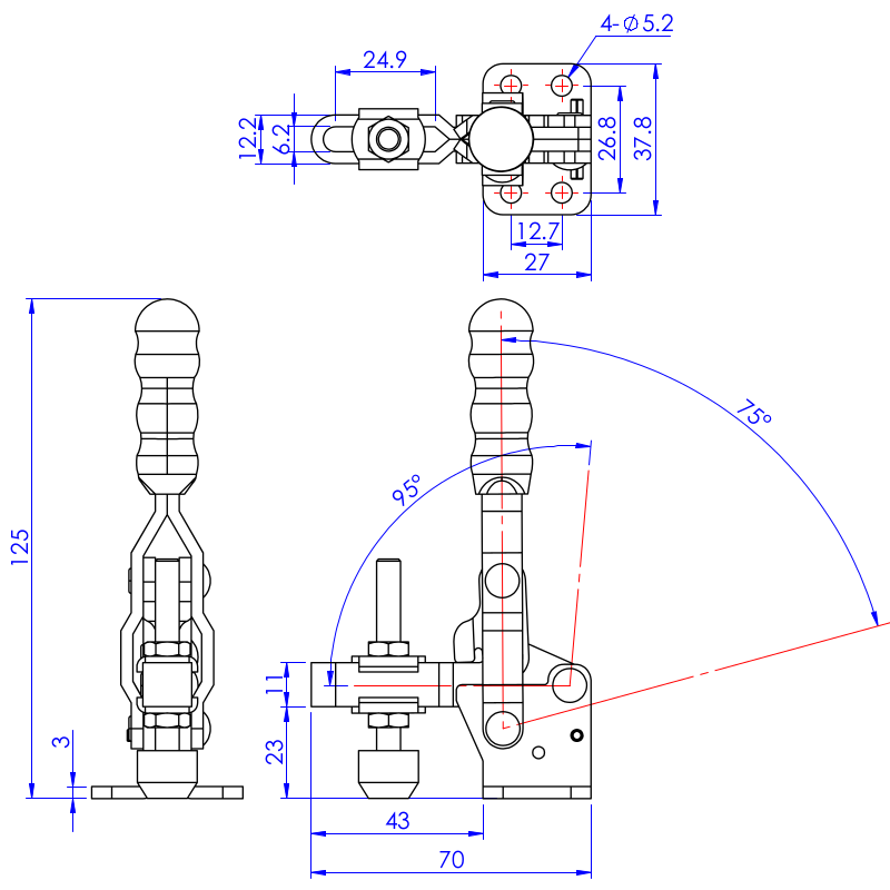 | Kąt odchylenia rękojeści | 70-110° |