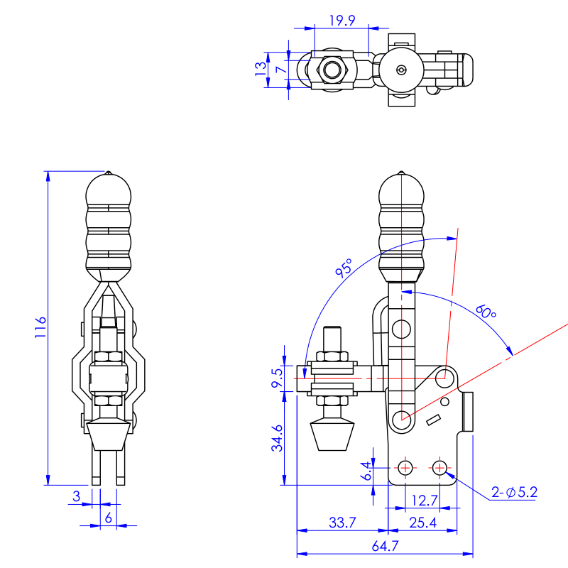 | Kąt odchylenia rękojeści | 60° |