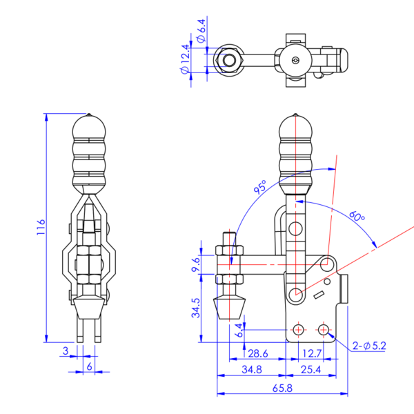 Ramię dociskowe pojedynczeMocowanie pionowe Oznaczenie: GH-12055