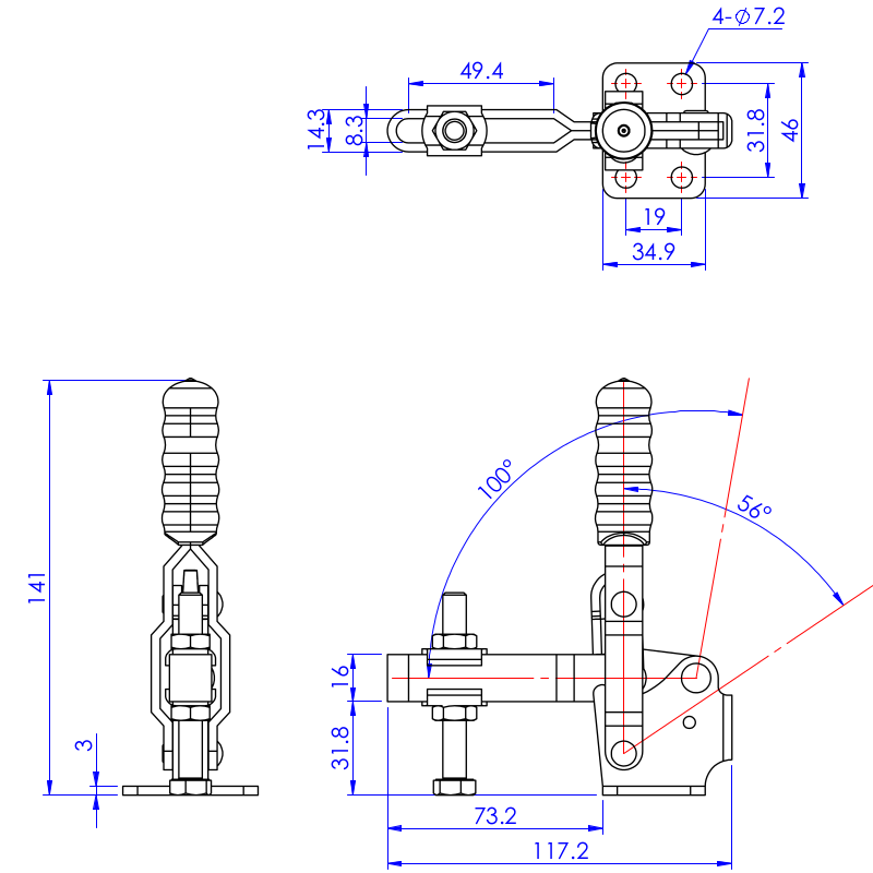 | Kąt odchylenia ramienia | 100º |