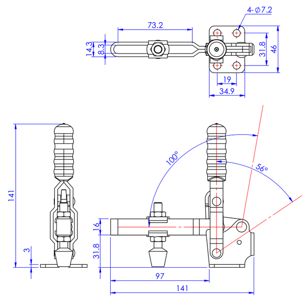 | Kąt odchylenia ramienia | 100º |