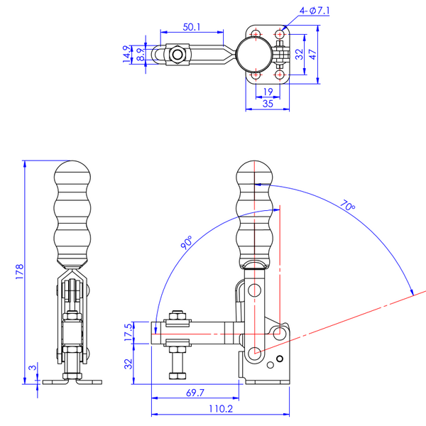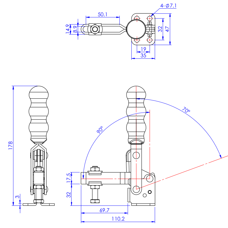 | Kąt odchylenia rękojeści | 70-100° |