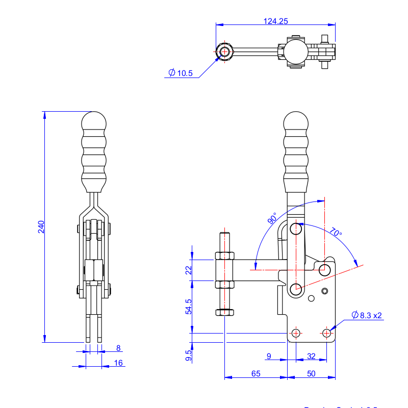 Ramię dociskowe podwójneMocowanie pionowe Oznaczenie: GH-13501-C