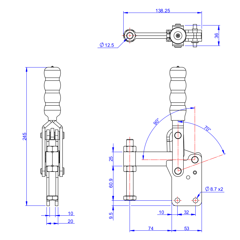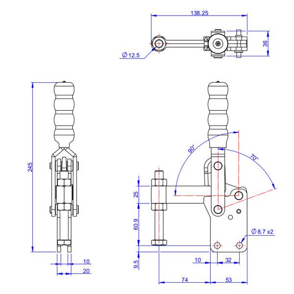 Ramię dociskowe podwójneMocowanie pionowe Oznaczenie: GH-14501-C