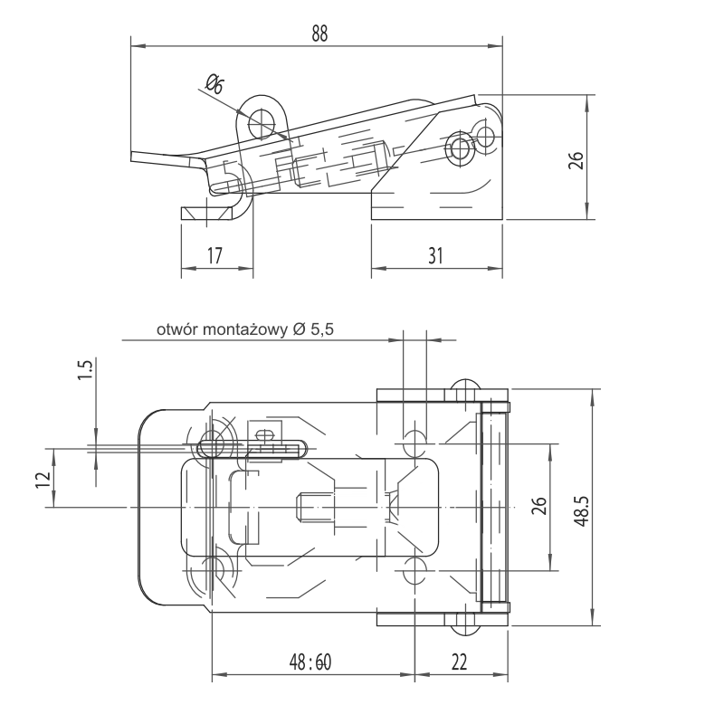 Zapięcie płaskie z uchem produkowane z blachy stalowej cynkowane.
